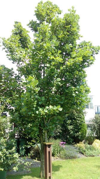 De tulpenboom oogt gezond met z'n fris donkergroene blad. Behalve dat er af en toe eens wat dode takken moeten worden verwijderd, is snoeien niet nodig. Snoeien maakt de kans heel groot dat schimmels het (nog) gezonde hout aantasten. De uitgroei van de boom is zodanig dat er vanzelf een mooie boomvorm ontstaat.